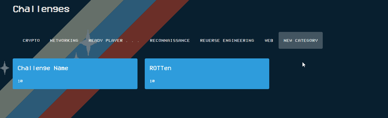 Your new category will now be created with your challenge in it and will be added to the end of your CTF's category navigation bar, as shown below.