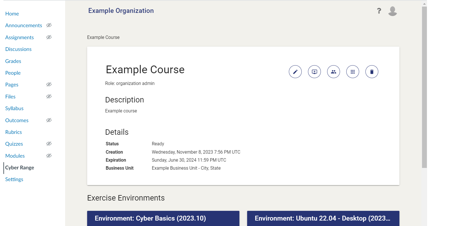 Instructors: Please reach out to your Canvas administrator and Organization Admin to configure LTI integration in Canvas. Once those preparations have been completed, this step can be done by anyone who is assigned as the instructor of a course in the Cyber Range.